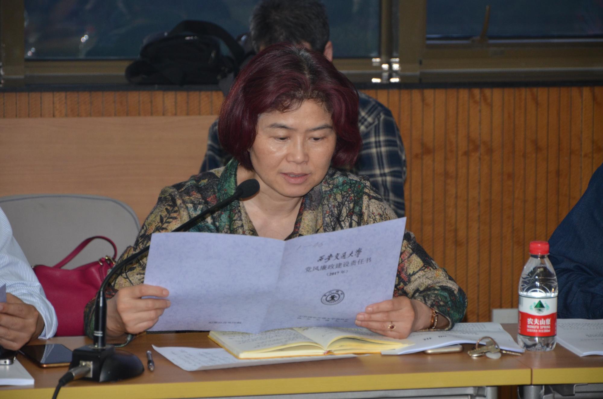 教务处党支部书记张萍传达了党风廉政建设暨警示教育大会相关精神,要求全体党员学习《党风廉政建设责任书》,并把责任落到实处。这份责任书包含原则、责任、考核追究三大部分共九项内容,明确规定了领导班子、领导干部在党风廉政建设中的具体责任。校领导班子成员、全部二级单位都将与学校签订责任书。