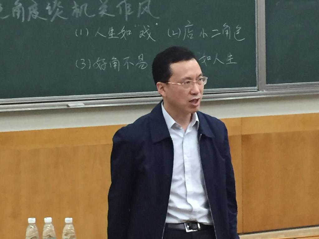 9月3日下午,研究生院组织召开全院大会,研究生院常务副院长吴宏春以“从角色角度谈机关作风”为题与大家谈心交流。他以一个实际生活中的具体案例开篇,启发大家对“角色”一词的思考,并生动形象地从“人生如戏”、“店小二角色”、“好角不易”、“戏如人生”四个方面展开,鼓励同志们珍惜自己的角色并努力扮演好自己的角色。他娓娓道来,要求大家在实际工作中多换位思考,急人之所急,为老师和学生提供优质的服务。