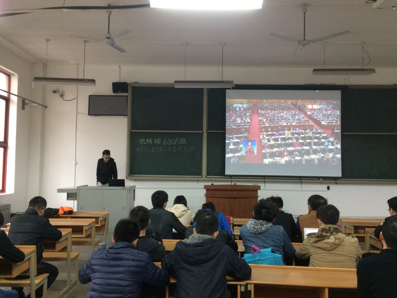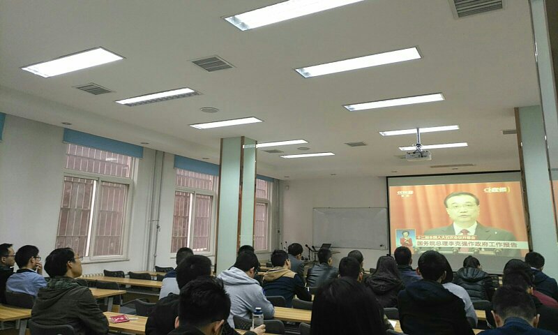 材料学院硕5009班党支部在集体观看直播后展开讨论,他们一致表示,聆听本次报告,感触颇深。政府的工作重点无不在经济民生和环境问题,最是贴近人民生活,切实关注人民最关注的问题,有助于提高人民的生活水平,维护社会稳定。本次报告,小篇幅汇报往年成绩,更多的谈论往年存在的不足和来年的目标、具体的工作,正显示了政府为人民服务的务实态度,更加令人信服,拥护党的领导。“咬定青山不放松,持之以恒为民众”李克强总理的这段话显示出政府的信心和决心。相信在党和政府的领导下,中国必将迎来美好的一年。
