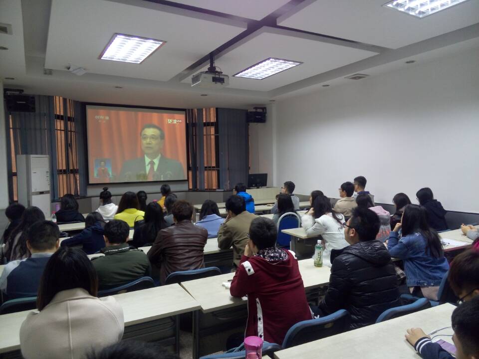 电信学院、医学部、数学学院、经金学院、机械学院、航天学院、软件学院、材料学院、公管学院、管理学院、人居学院、人文学院、法学院、化工学院、前沿院、金禾中心等研究生培养单位都组织了研究生党支部观看全国人大会议直播,研究生们通过网络、电视、手机客户端等多种形式关注“两会”动态,深入学习全国“两会”精神,热议李克强总理的工作报告。集体组织的学院还在会后进行集中讨论,师生们对国家的未来发展充满了信心,并结合专业学科、就业和教育等与研究生紧密相关的热点问题展开了热烈讨论,畅谈感想心得。
